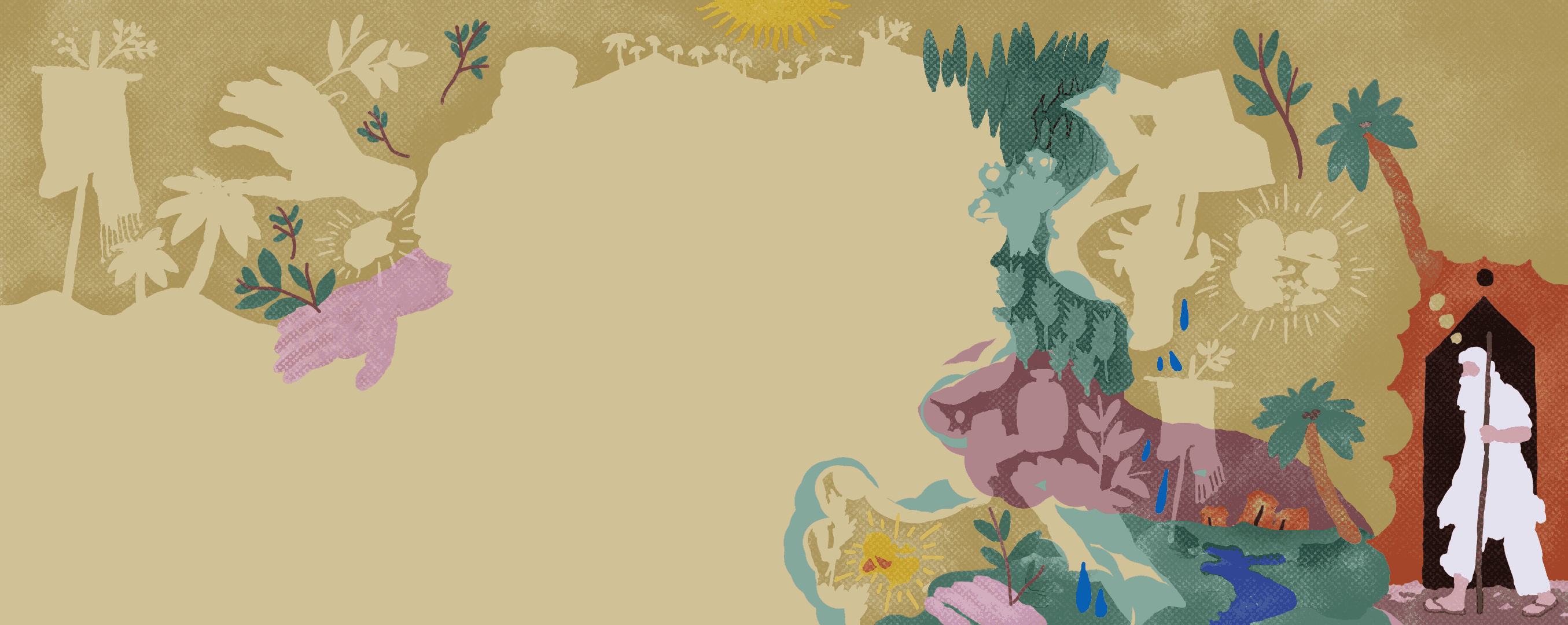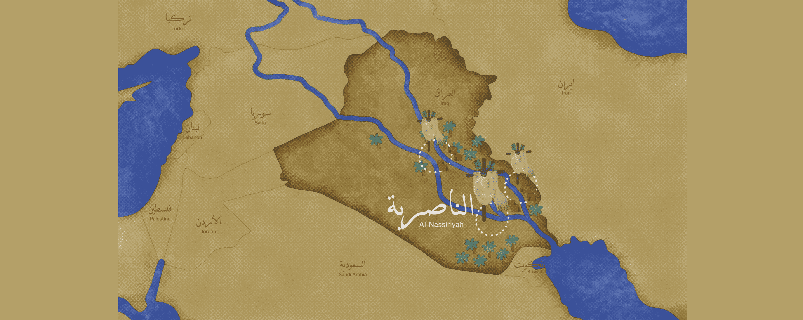 This mural is an abstraction of the conditions and descriptions collected from interviews with Mandaeans in the diaspora and non-Mandaean Iraqi communities from Nassryah and Amara cities and who lived side by side with their Mandaean neighbours before their departure from Iraq. The mural is interactive and contains both audio and text that convey memories, belonging and anecdotes of when these communities enjoyed sharing space, relations and intimate social ties. The mural is meant to be felt rather than read, as it is not a historical or religious translation, but an artistic rendering of recorded social feelings.هذه الجدارية عبارة عن تجريد للأحوال والأوصاف التي تم جمعها من المقابلات مع المندائيين في الشتات والمجتمعات العراقية غير المندائية من مدينتي الناصرية والعمارة والذين عاشوا جنبًا إلى جنب مع جيرانهم المندائيين قبل مغادرتهم العراق. اللوحة الجدارية تفاعلية وتحتوي على صوت ونص ينقل الذكريات والانتماء والحكايات عندما استمتعت هذه المجتمعات بتقاسم المساحة والعلاقات الاجتماعية الحميمة. من المفترض أن يتم الشعور بالجدارية وليس قرائتها حرفيا ، لأنها ليست ترجمة تاريخية أو دينية، ولكنها عرض فني للمشاعر الاجتماعية المسجلة٠